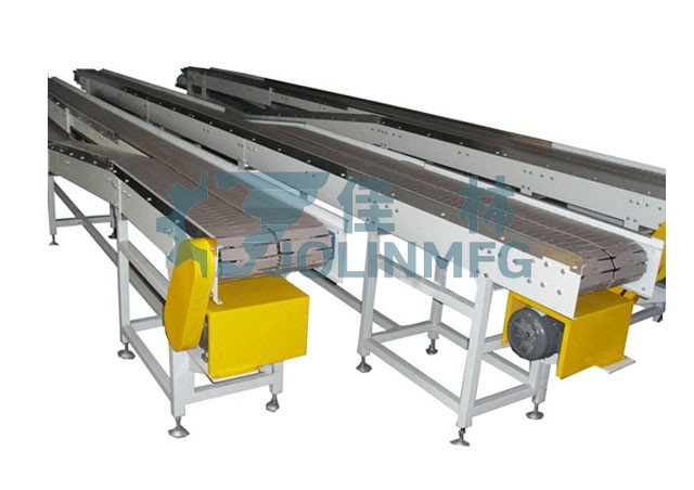 チェーンプレートコンベヤはチェーンプレートを荷重とし、モータ減速機を動力伝達として多列チェーンプレートを並列に通過し、チェーンプレートコンベヤを広くして差速を形成し、多列チェーンプレートの速度差を利用して多列コンベヤを押圧なしで単列コンベヤに変更し、飲料ラベル、充填、洗浄などの設(shè)備の単列コンベヤの要求を満たす。2本のチェーンプレートコンベヤのヘッドテール部を重畳式の混合チェーンとしてボトル(タンク)體を動的過剰狀態(tài)にし、コンベヤラインに材料を滯留させず、空きボトルおよび実ボトル圧力と無圧力コンベヤを満たすことができる。